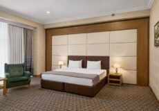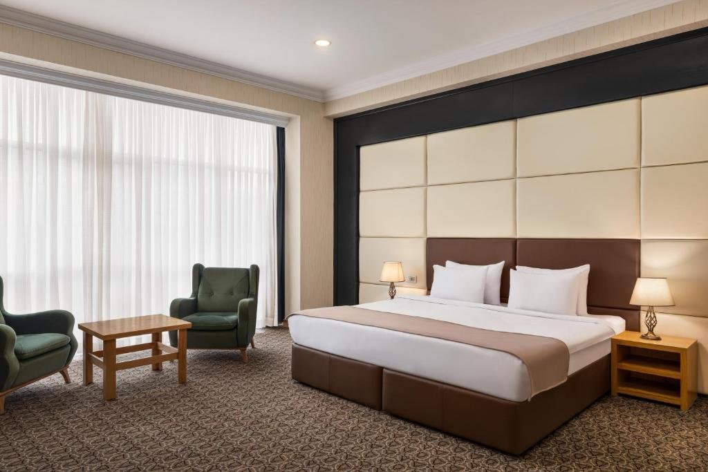 1 extra large double bed Providing free toiletries and bathrobes, this triple room includes a private bathroom with a walk-in shower, a bidet and a hairdryer. The spacious air-conditioned triple room provides a flat-screen TV with satellite channels, soundproof walls, a seating area, a wardrobe as well as city views. The unit offers 1 bed. In the private bathroom: Free toiletries Robe Bidet Toilet Bath or shower Slippers Hair dryer Toilet paper View: View of the city Services and amenities: Desktop Safe Elevator for access to upper floors Flat screen TV Wake-up call service Alarm Fan Towels Fully accessible for guests with reduced mobility Seating area Towels/linen for an extra charge TV Hypoallergenic Underwear Electric kettle Heating Telephone Wardrobe Wardrobe or closet Soundproofing Satellite channels Air conditioner Antibacterial hand gel